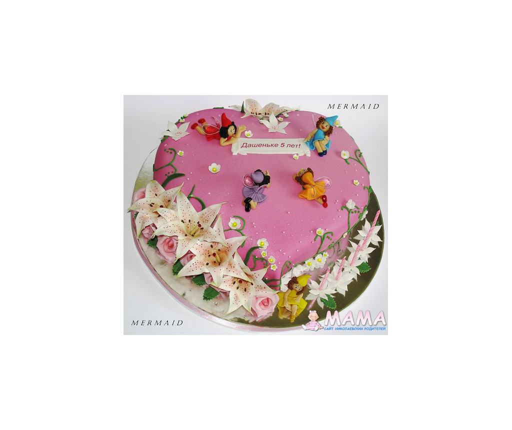 Наташин торт для Светика - опять шедевр, такие милые феи, нежные лилии, очень красиво, и очень приятное сочетание цветов. А что внутри?