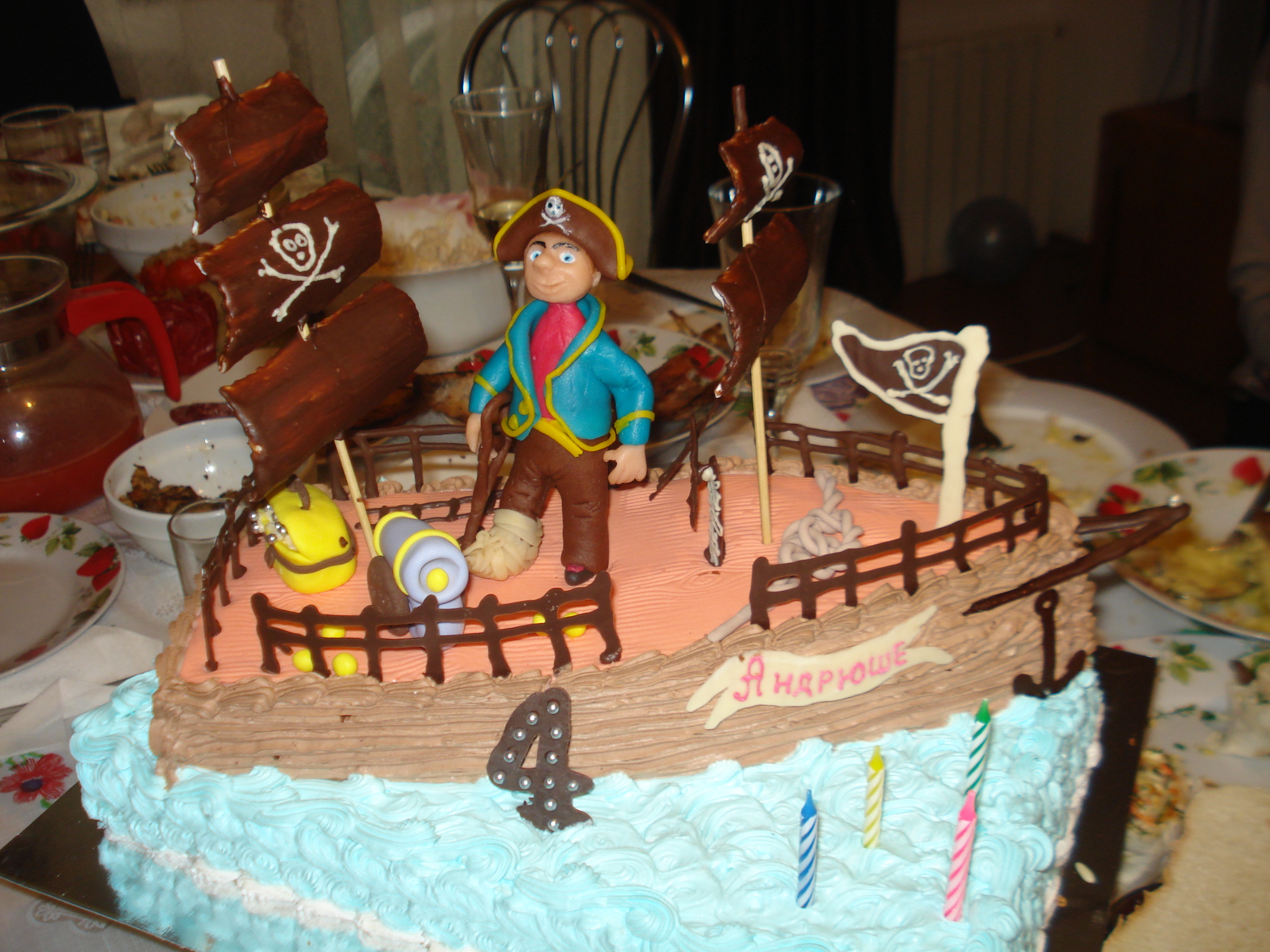 Торт для пиратского дня рождения моего старшего сыночка. У кондитера Лены просто золотые руки и цены очень доступные.