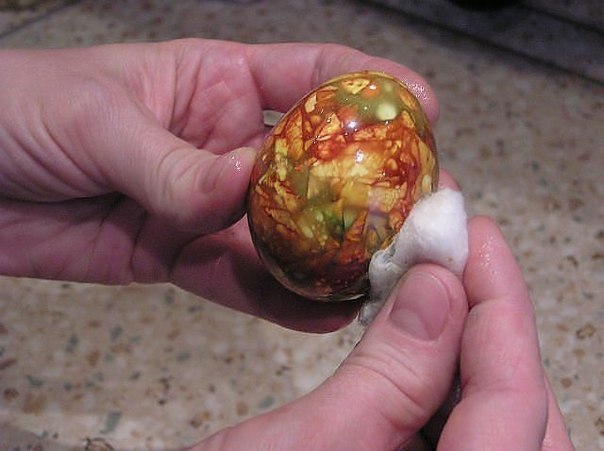 11. Яйца обсушить и протереть растительным маслом для блеска.