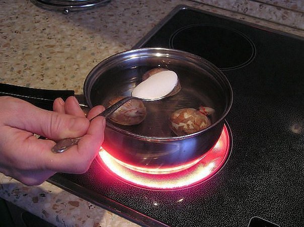 6. Яйца ставим варить, добавляем ложку соли.