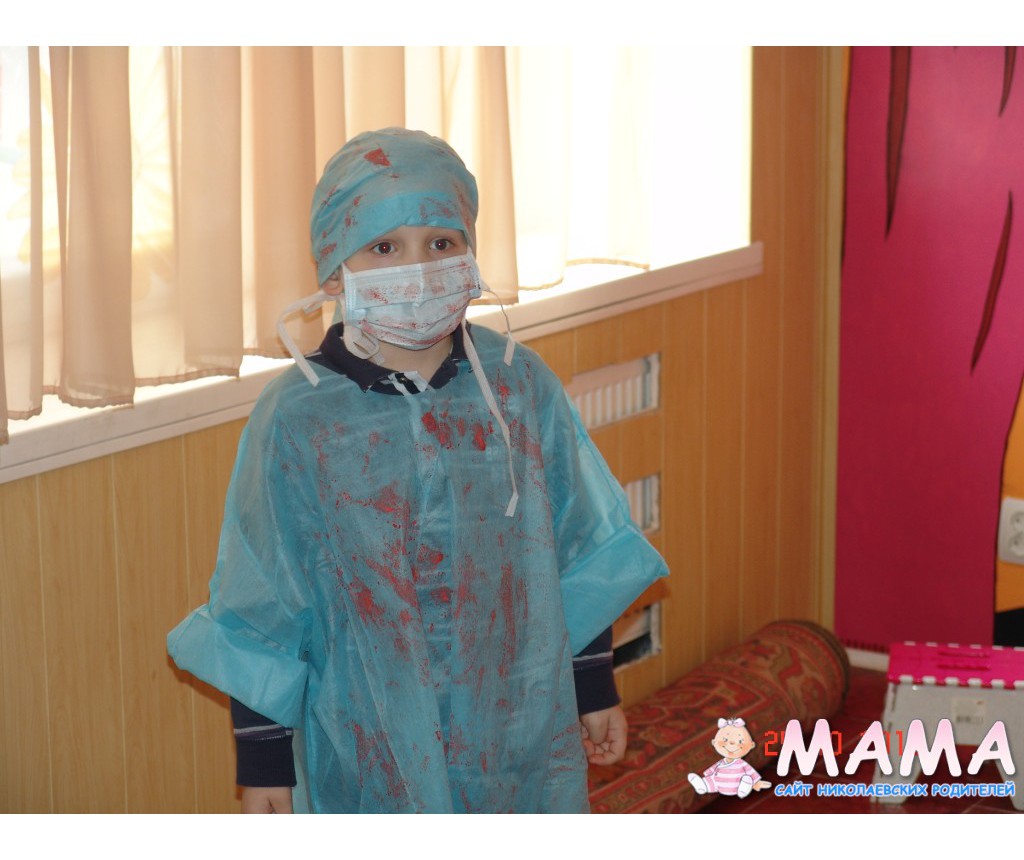 Ночью меня осенило, и вместо "Доброго утра", я сказала сыну - "У тебя будет костюм хирурга-убийцы" (такое словосочетание мне попалось на просторах Интернета)