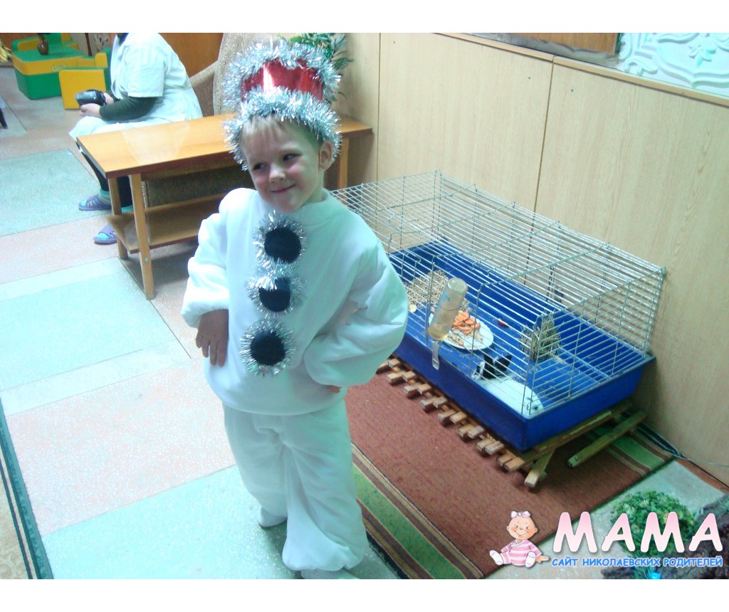 Снеговик-это утренник в ДС,а костюм бычка-это наш новогодний костюм на этот год.Вчера мы в нем были на новогоднем утреннике Лунтика.