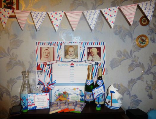Он у нас получился в морской тематике.Вот моя подгулявшая единичка)) Как обычно, дотянула все до последнего, доклеивала последние цветочки уже в день Х. Накануне оказалось, что не хватает синих салфеток