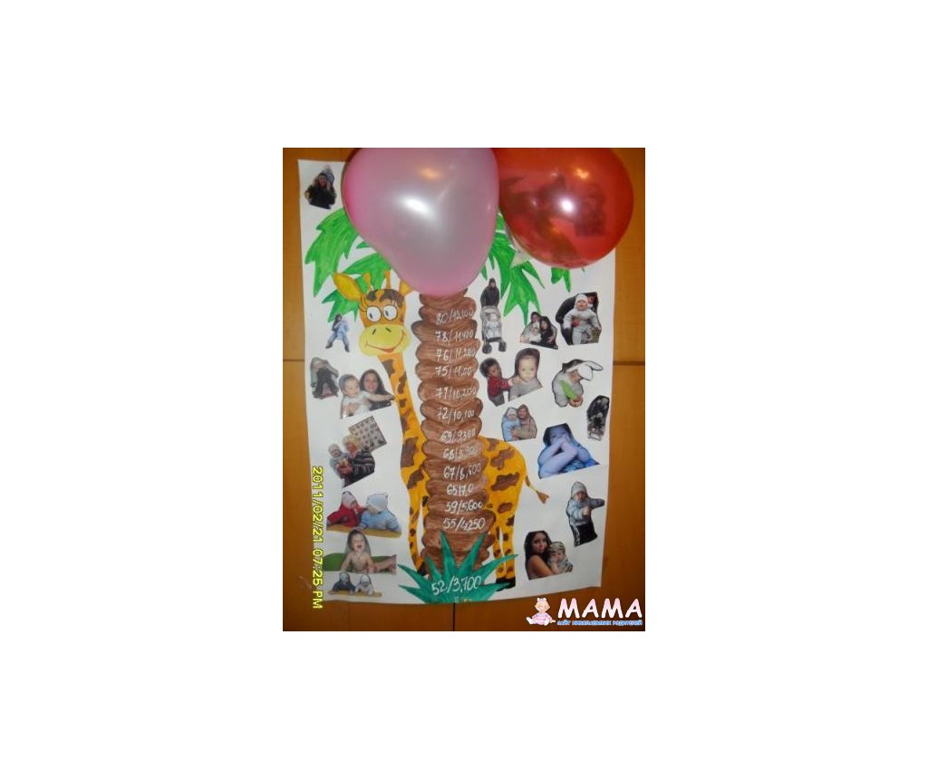 приготовила три фотки в годик - доци, мужа и свою. Приклеила их в ряд, а снизу написала нос, щеки, подбородок, глаза, губы, форма лица. Надо было ставить плюсики под моим фото или мужа, кто наберет больше на того и похожа. Но в этом конкурсе все заявили, что доця папина, а я получила только один плюс. На фото в левом углу видно плакатик.