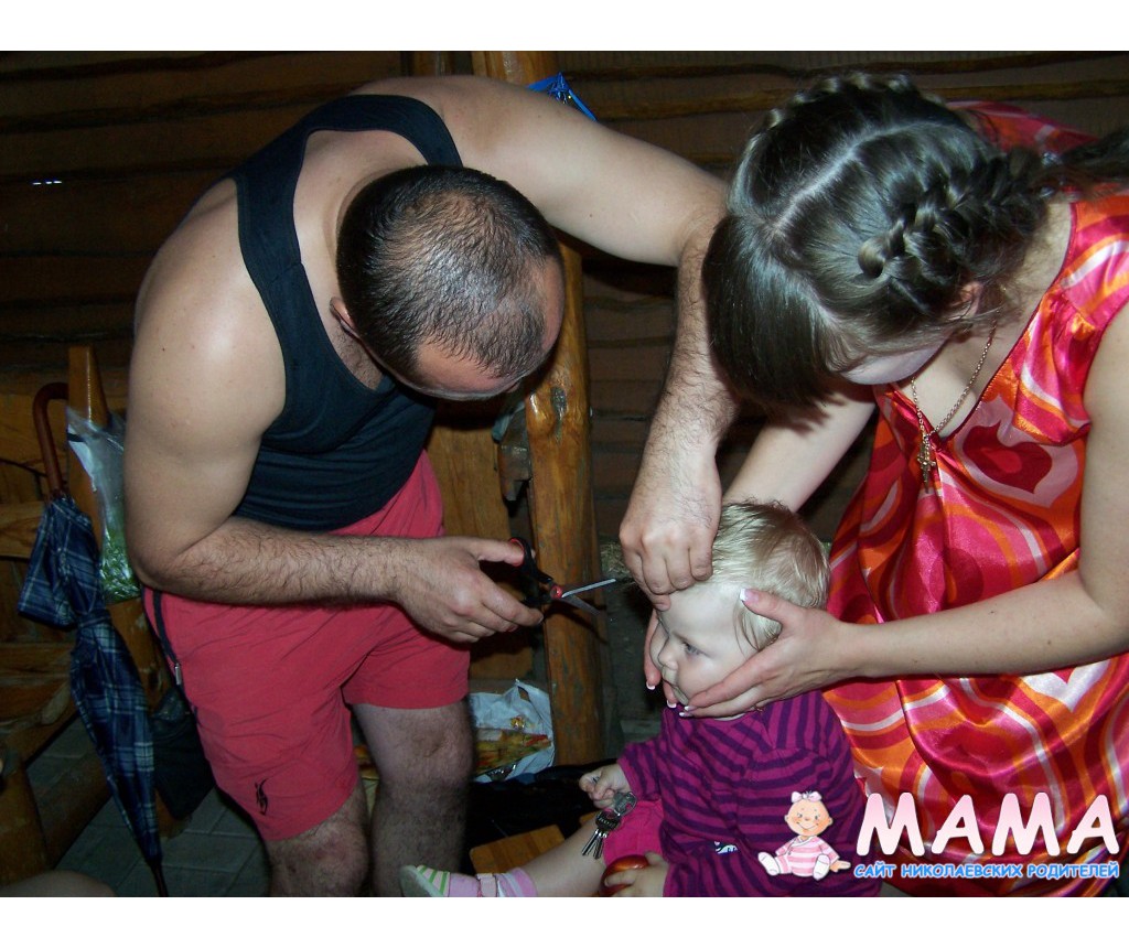 Ещё была конечно же первая стрижка-т.к. мы не знали кому именно стричь,то решили провести конкурс среди крёстных-они должны были пить из бутылочки с соской,кто быстрее выпил-тот и стрижет,а другой держит крестника)))