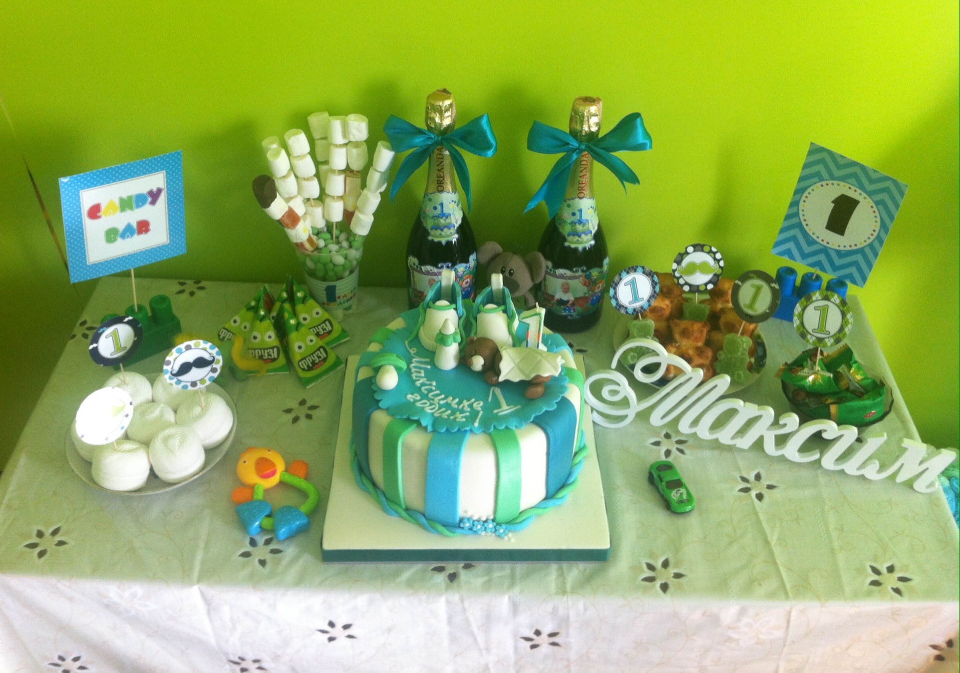 Готовилась зараннее. Желая сделать праздник максимально детским, праздновали в игровой комнате "Волшебный сундучок" с аниматорами "свинки Пеппа и Джордж". Пригласили своих друзей с их детками, так сказать, пора дружить семьями!!! Возрастная категория от года до 8, и мальчики, и девочки - аниматоры справились на "отлично", детки былы все задействованы и веселились от мала до велика. В их программу внедрили гадание: из многих предметов Лев выбрал связку ключей от машины и квартиры:), крёстные совершили народный обряд - "постриг крестника" и в подарок получили футболки со львёнком впереди и надписью на спине "Я - крёстный (ая) Лёвы!" Для деток накрывали солёно-сладкий фуршет, выпечка принципиально домашняя (торт, кексы, трубочки, желе), оформляла стол в стиле "candy bar" Львёнок из мультика "Львёнок и черепаха"(имея опыт в скрапбукинге, не составило труда сделать Ссылка , единичку, салфетки своими руками), время, к сожалению, ограничено, никто из детей не хотел уходить, и тут как будто и это предвидено, в подарок каждый ребёнок получил гелевый шарик и бонбоньерку с конфетами-пожеланиями.