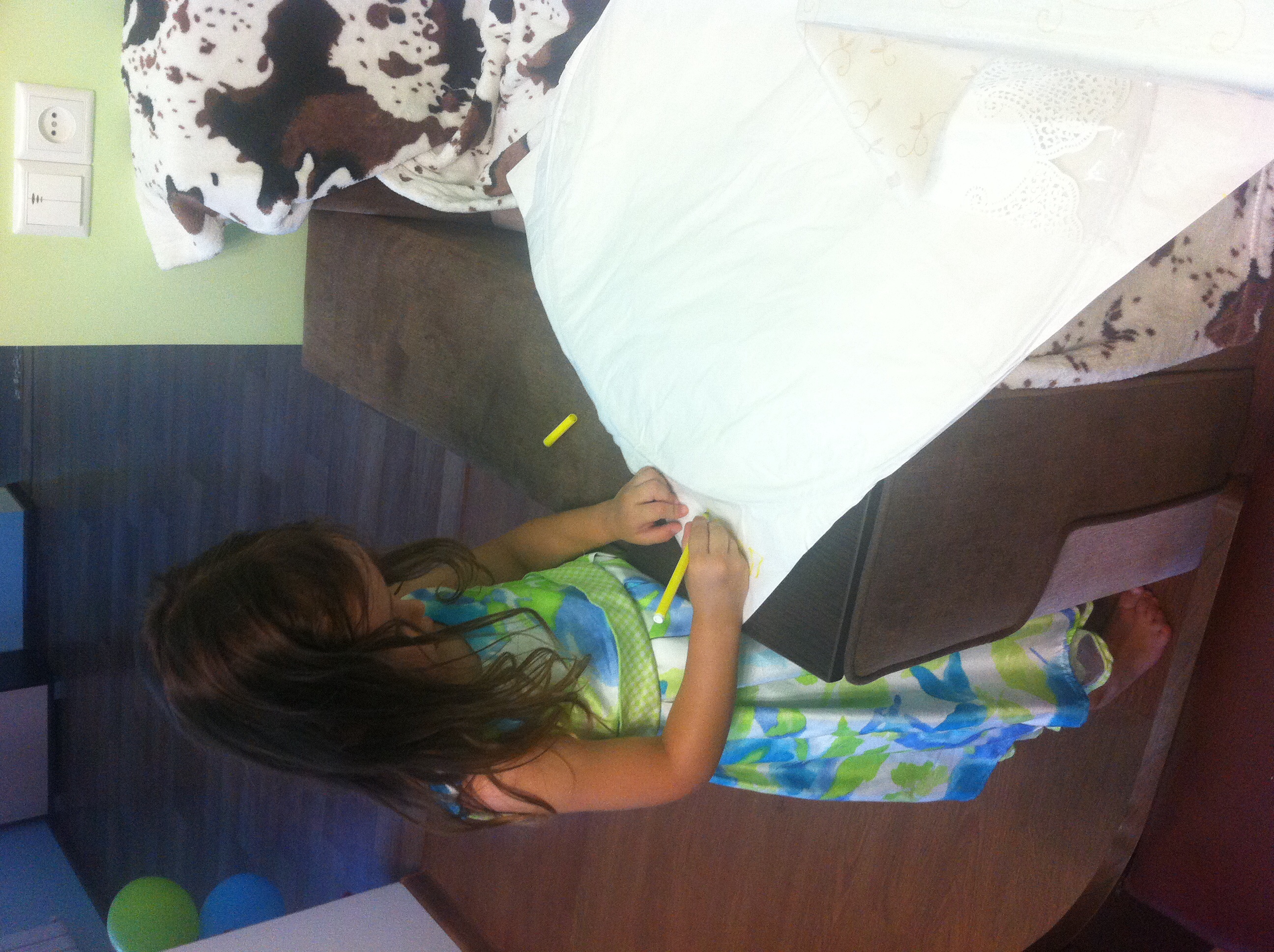 Это было вечером, а утром разбудили малыша шариками и подарочком от сестрички - пальчиковыми красками.