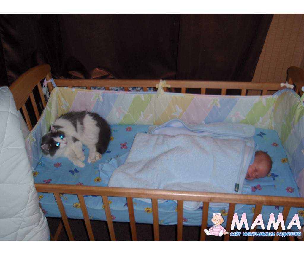 У нас тоже 2 кошки. Маська любит за ними гонятся или в ходунках или ползая. Кошки его стороной обходят, хотя спят все время под его кроваткой. Да с шерстью приходится бороться каждодневным пылесосиньем и мытьем полов.