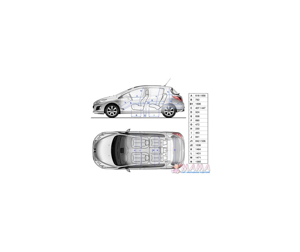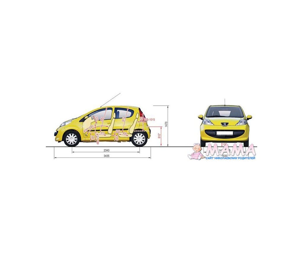Автомобиль Peugeot 107 оснащен креплениями Isofix для установки детских кресел, при этом сзади на сиденье имеется дополнительная точка крепления. Не забыты и диагонально-поясные ремни передних сидений с пиротехническими преднатяжителями и ограничителями усилия натяжения ремня. Конструкция ремней безопасности минимизирует риск получения травм водителем и передним пассажиром. Задние пассажиры защищены диагонально-поясными ремнями безопасности с инерционными катушками. Предусмотрена система, предупреждающая звуковым* и визуальным сигналом о не пристегнутом ремне безопасности водителя*. * При наличии боковых подушек безопасности