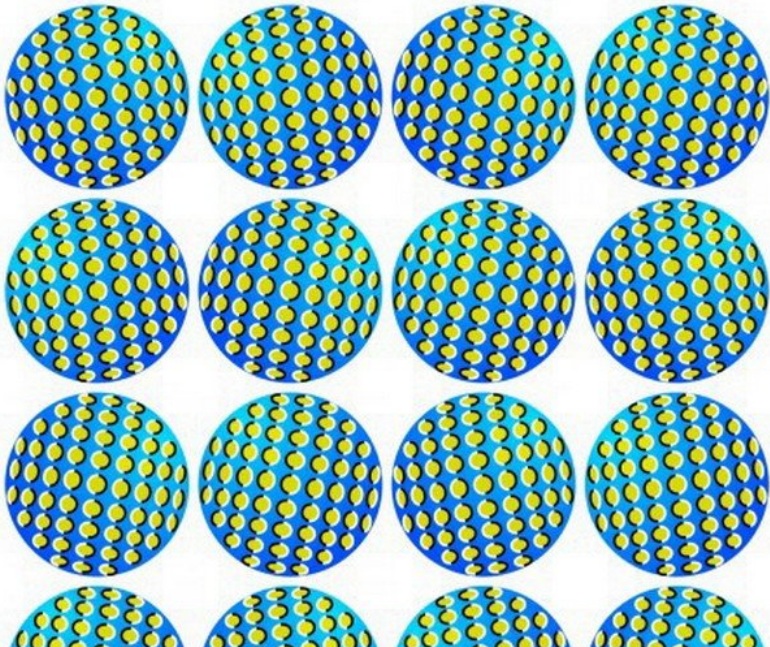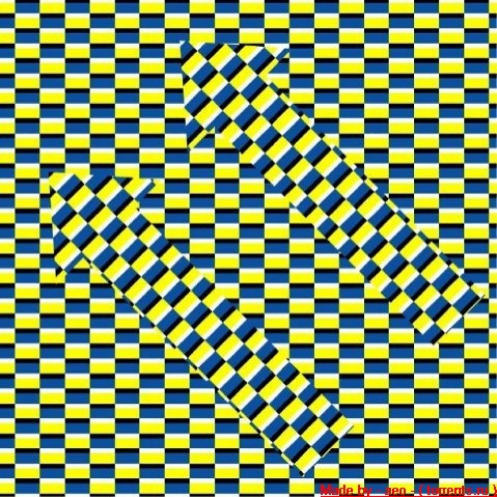23 October 2014 Эту иллюзию изобрел японский психиатр Акиоши Китаока. Он утверждает, что иллюзия неподвижна для спокойных, уравновешенных и отдохнувших людей. Если же иллюзия активно движется, то Вам нужен отдых и сон в течение 8 часов. Ну, а если же иллюзия очень, очень быстро движется, то Вам срочно нужен отдых в больнице...