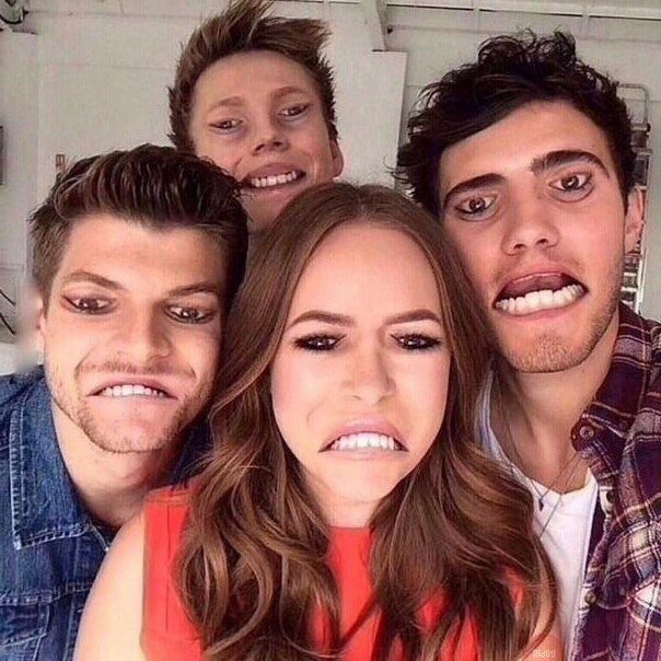 Очень прикольный обман зрения. Смотреть долго не нужно, эффект виден сразу. Сначала просмотрите и убедитесь, что на фото совершенно нормальные лица. Дальше смотрите на крестик посередине. Видите этих уродцев и монстриков? ![]()