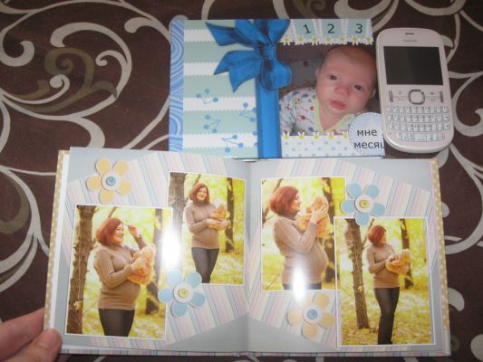 Внутри ничего лишнего не обрезано, все как на макете. Да, некоторые фоточки получились маленькими, т.к. я на некоторые страницы делала коллажи по 4-5 фото. Зернистость повышена, но при рассмотрении на стандартном расстоянии от глаз, этого совсем незаметно.