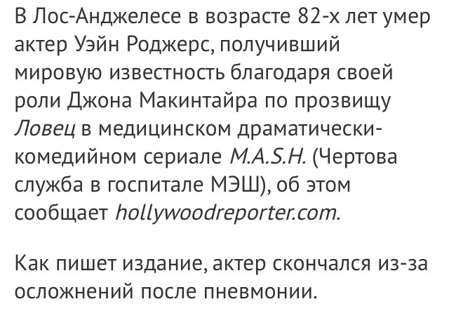 Актриса Эллен Альбертини Дау скончалась в больнице в возрасте 101 года, как сообщает rollingstone.com. 29 апреля 2015 года после перелета из Нью-Йорка (США) в Пенсильванию (США) актриса почувствовала себя плохо и была госпитализирована.