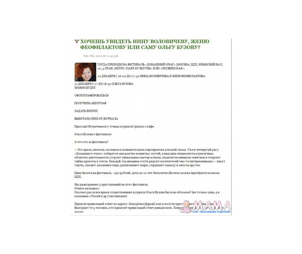 09 December 2010 Цитата: #5267 В@люш@ 09 December 2010, 09:58N!K@, не могу сайт домовский открыть, что там Воловичева нового написала? вчера про Кузина и телек, а сегодня?