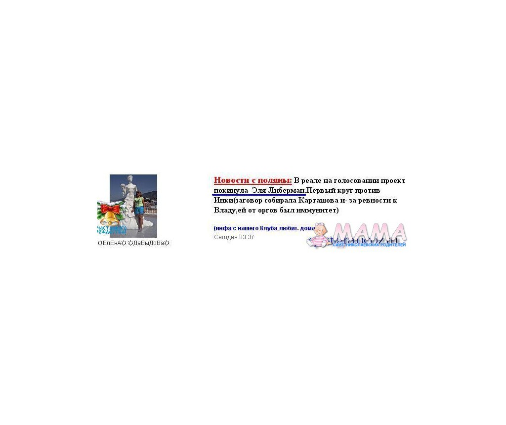 Имя: Ника Группа: VIP пользователь Сообщений: 2121 Регистрация: 20.03.2011 Заходил(а): 07.12.2021 |