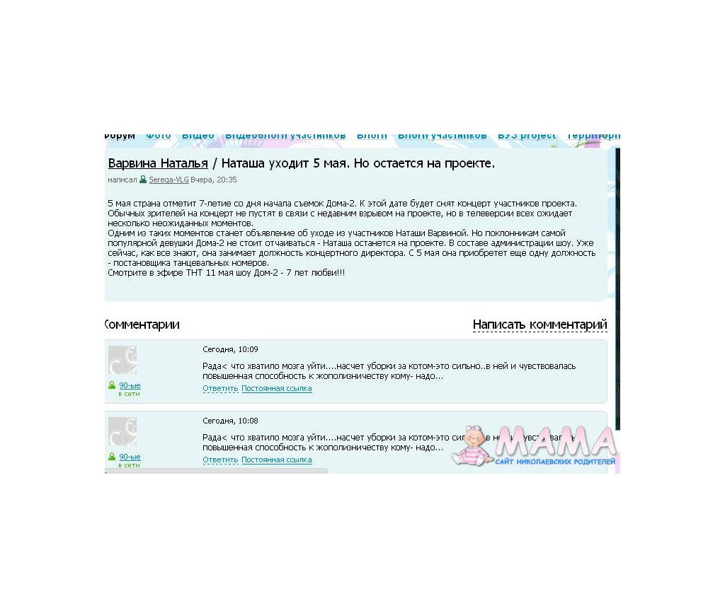 ]Пусть говорят… Апрель 29, 2011 Сегодня я была на съемках программы «Пусть говорят» у Андрея Малахова. Тема передачи «Кто взорвал Дом-2?. Меня очень тепло встретил зал, что было крайне необычно на общем фоне раздражения от проекта. Из зала приятно отозвались обо мне, как об интересной личности, в отличие того, что на проекте творится сейчас. Во время бурного обсуждения событий, Андрей попросил всех замолчать: «Я хочу услышать Солнце, потому что я её тысячу лет не видел.» Жизнь удалась