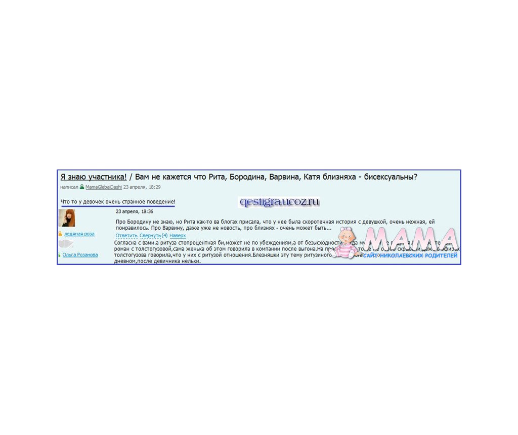 Давненько не заходила на сайт,сегодня зашла и хотела написать как мы сейчас живём и растём,но прочитав много нового о себе передумала,т.к. в любом случае здесь найдутся люди которые все опошлят и испачкают своими мерзкими комментариями.В первую очередь хочу поблагодарить всех тех,кто переживает за нашу семью и любит нас!Спасибо вам большое!Я вас тоже очень люблю!И пусть у вас в жизни все будет хорошо!ч*ок вас!)Во вторую хочу ответить(иногда это ооооочень забавно) тем кто меня не любит или,судя по репликам скорее ненавидит.Вы слышали когда ни будь выражение "Необоснованное чувство ненависти- это вполне обоснованное чувство зависти!"? Думаю нет,так-как большинство из вас либо закомплексованные круглосуточно сидящие в инете малолетки, либо плохосохранившиеся бабёнки с пробегом, которым изменяют мужья и они преждевременно впали в предстарческий,а то и в старческий маразм и потому тоже целыми днями не покидают компьютерного стула т.к. жизнь за пределами манитора сера,мрачна и малопривлекательна,как и они сами)Эти выводы я делаю исключительно из ваших слов)))В любом случае желаю вам оглянуться и не превращаться дальше в негативщиков-фанатов-деградантов.Ведь не я и ,думаю, никакой др участник лично вам ничего плохого не сделали.Хватит уже так пристально всматриваться в чужую жизнь, внешность и интеллект а заняться своей,пока не все потерянно!(хотя скорее всего такие как вы * не меняются и часть из вас уже пишет мерзкий комент а другая подсчитывает ошибки в посте))))Ядом могут брызгать все,но поверьте это не самое интересное в жизни!Удачи вам)