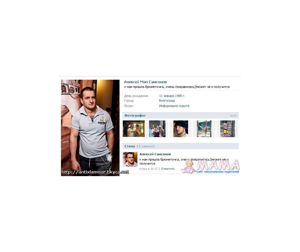 Анкета Самсонова с офсайта.