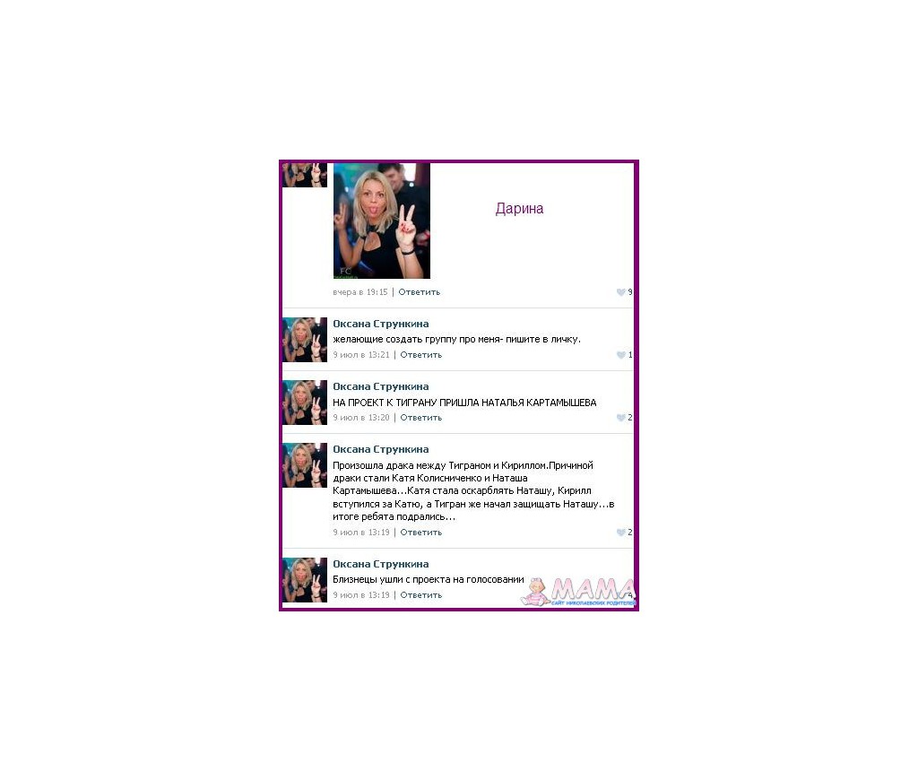 Имя: Ника Группа: VIP пользователь Сообщений: 2121 Регистрация: 20.03.2011 Заходил(а): 07.12.2021 |