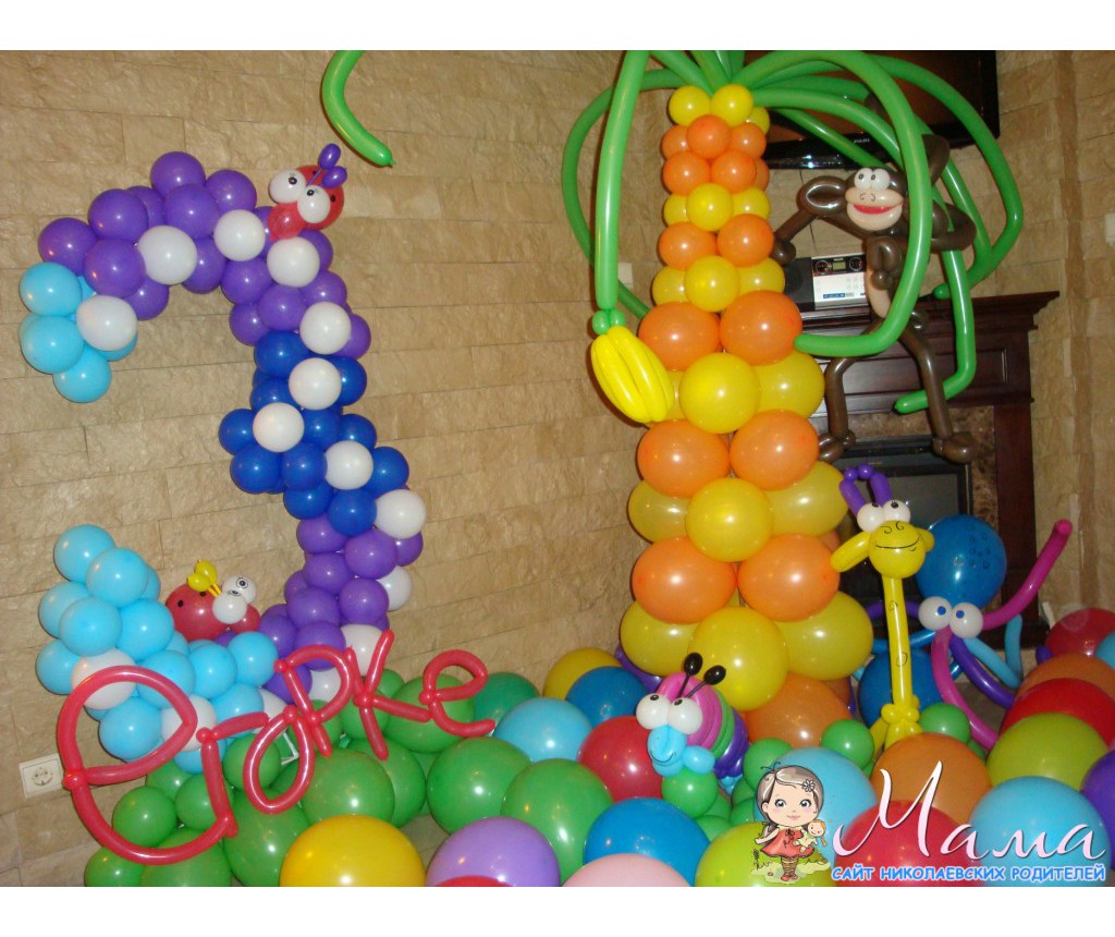 Вот сегодня с большим удовольствием оформила кафешку для маленького именинника. Самой прям захотелось побаловаться в шариках, потягать обезьяна за ухи и весело пофотографироваться с букашками :-) Родителям малявочки спасибо за то, что не забыли о том, что для ребёнка главное - не колбаса на праздничном столе, а яркое настроение!