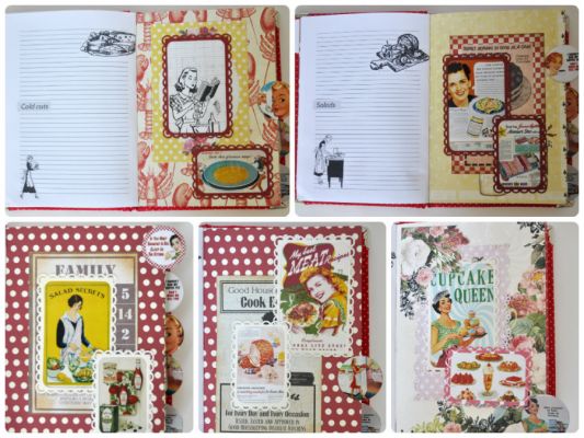 . Это то самое чудовище, которое я самонадеянно взялась успеть еще на Настином МК - размера А5, тогда как нормальные люди спокойно шили себе А6 и было им счастье! Придумалась мне такая кулинарка в ретро-стиле "Америка 50-х годов" - ярко-красный с белым горошек, приталенные расклешенные платья, традиционные рецепты для минимум трех поколений, в общем - для идеальной домохозяйки!