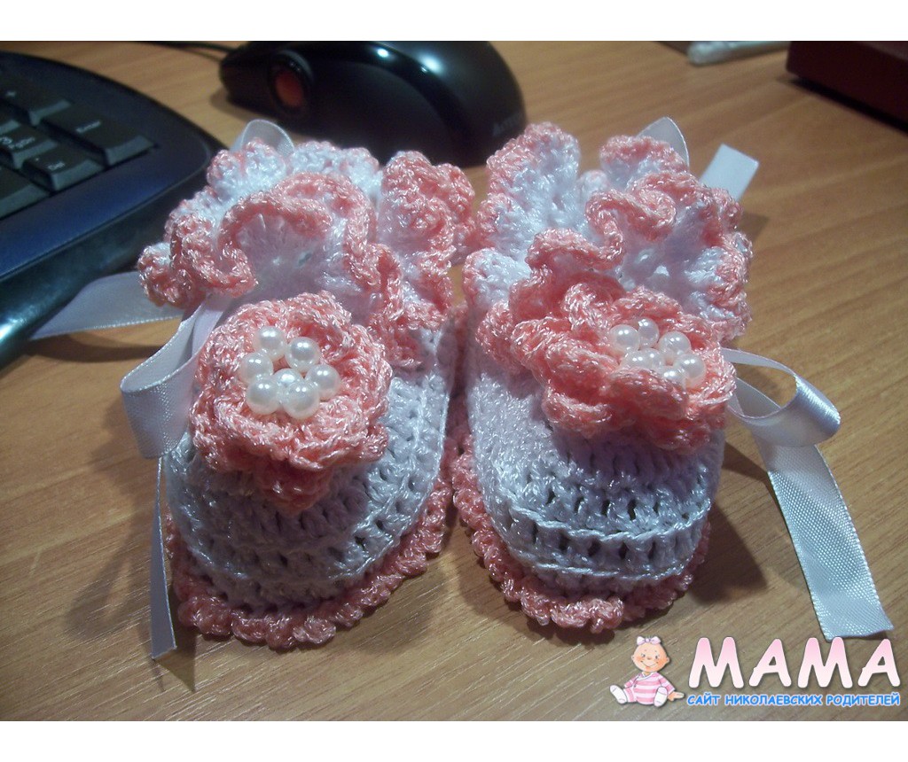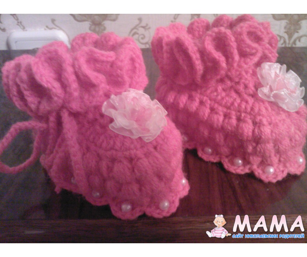 Вот такие пинеточки я связала сыночку во время беременности