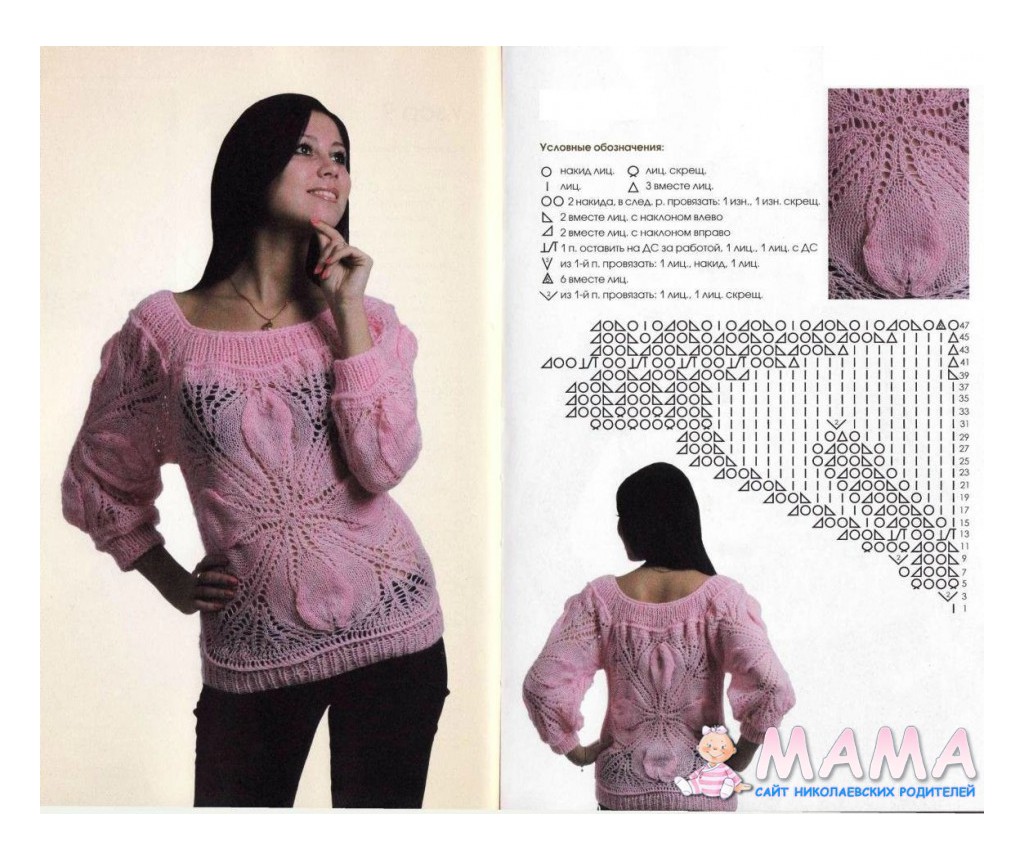Татьяна, мне не встречалось описаниие этого свитерка, но подозреваю, что у Вас есть схема центрального цветка ведь так? Он вяжется спицами вкруговую от центра. Выставляйте схему - помогу чем смогу)))