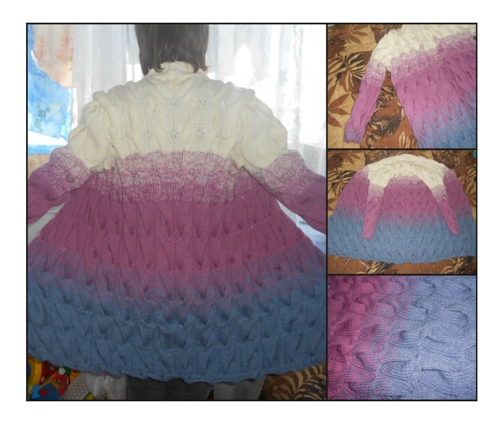 вчера закончила, Лало кардиган 44 размера 100 см в длину, и детский на 4 года