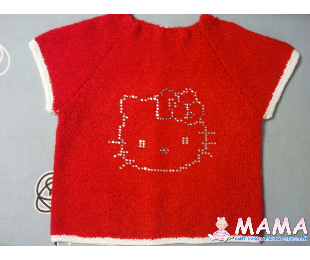 Вот перевязала для дочурки регланчик из букле. И дочурка попросили вышить ей Китти. Но что-то мне не нравится как получается. Понимаю, что показывать половинную работу не принято, но хочу спросить совета- доделывать или придумать что-то другое?