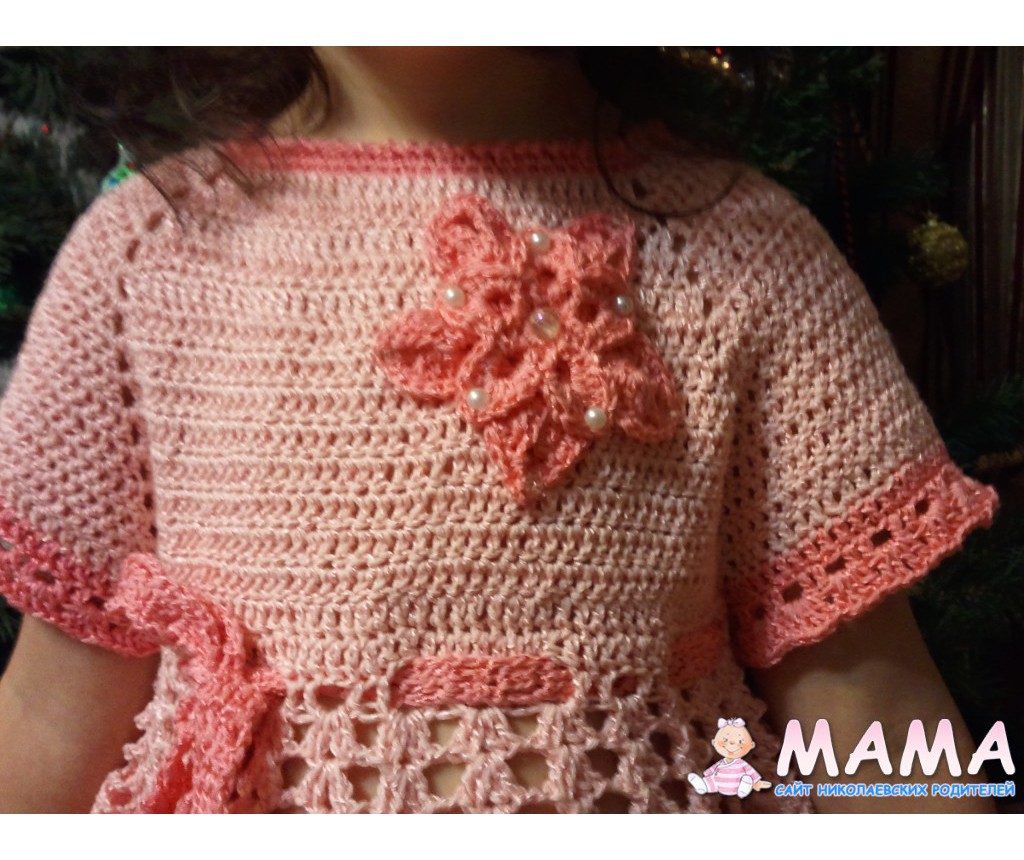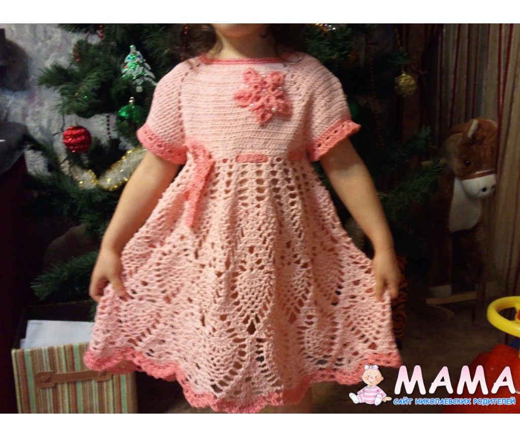 А у меня вот связалось для Алеси платье. Никогда больше не буду брать эту пряжу. Планирую носить с гольфиком и на колготки (естественно), но ребенку срочно надо было померять. Причем и мерять и мультик смотреть. Так что за фотки извините, я еще тот фотограф.