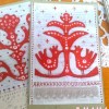 25 August 2012 это вытынанка )) по мотивам вышивок )) вырезана из папиросной бумаги и наклеена на основу, сверху еще контуром точечек наставила. для основы пошматовала сказку "Іван - мужичий син" (можно было и не шматовать), наклеила на картон, сверху белилами разбавлеными покрыла.