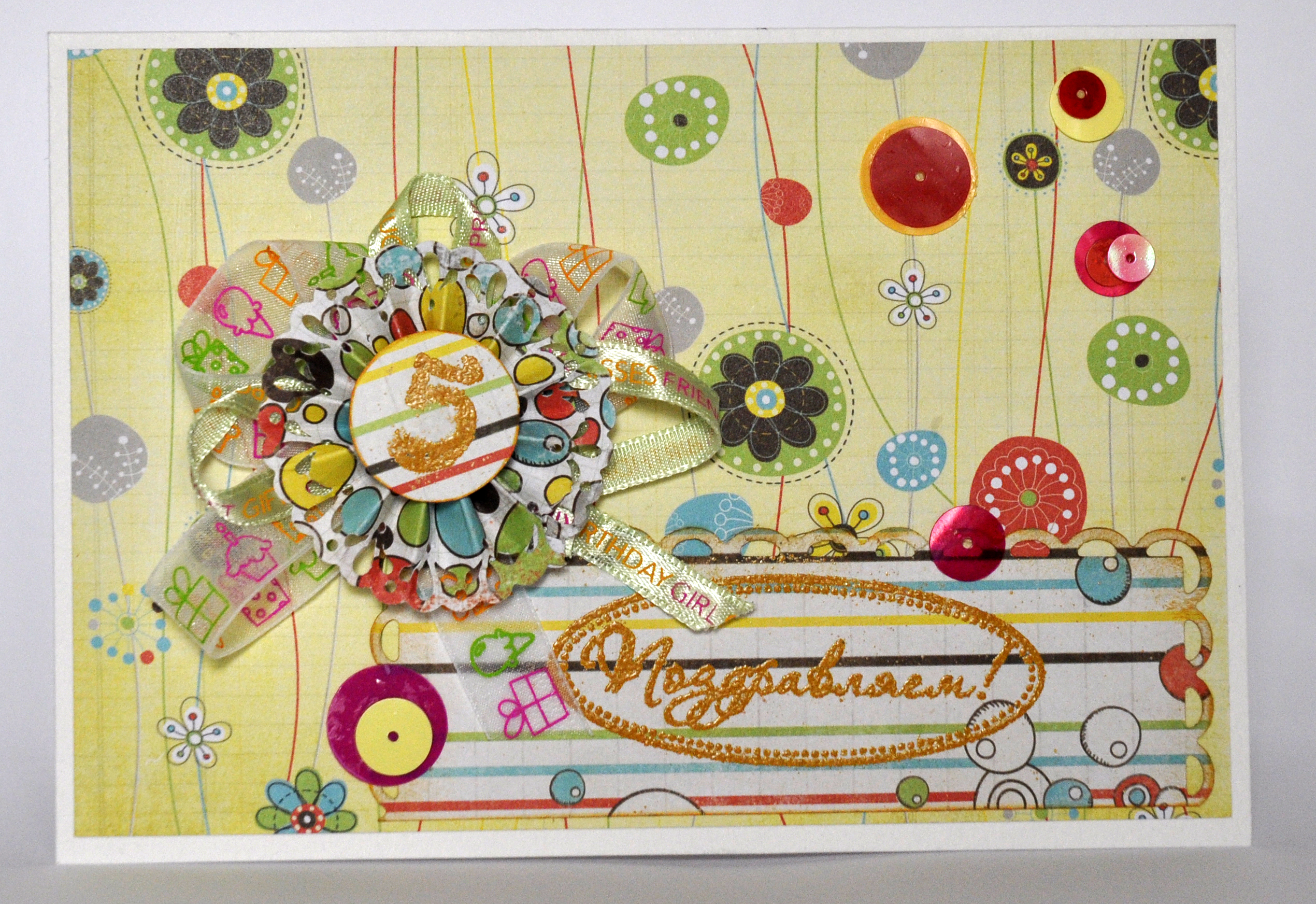 Спасибо, девочки! Открыточка для очень позитивной малышки, поэтому и выбор материалов такой - солнечный )