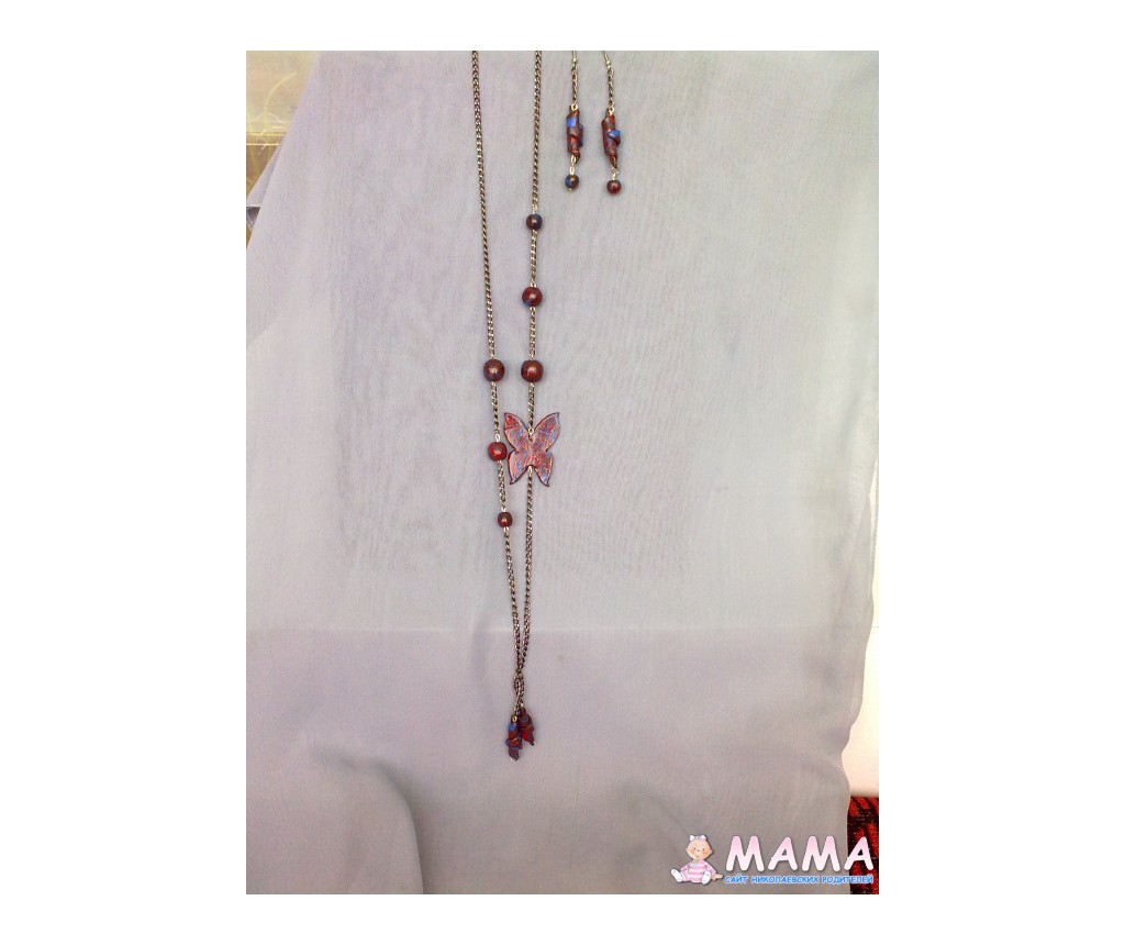 Двусторонние серьги и двусторонний кулон на лентах из органзы.