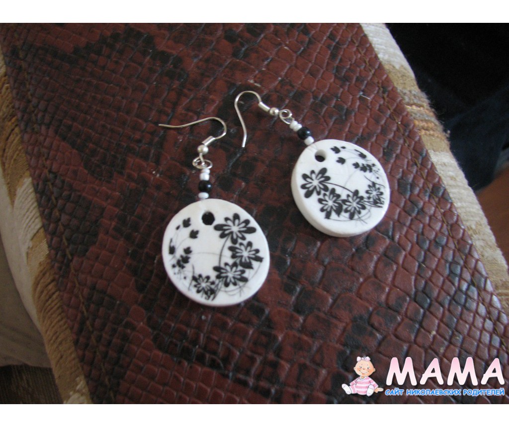Спасибо! Заколки запекаю сразу на основе, иногда в два этапа. То же с самоколками. Клеить металлическую основу на керамику не рискую, может отвалиться, перед клиентами неудобно будет. А черно-белый комплект с розами девченка-сткдентка из Одессы заказала, довольна осталась.