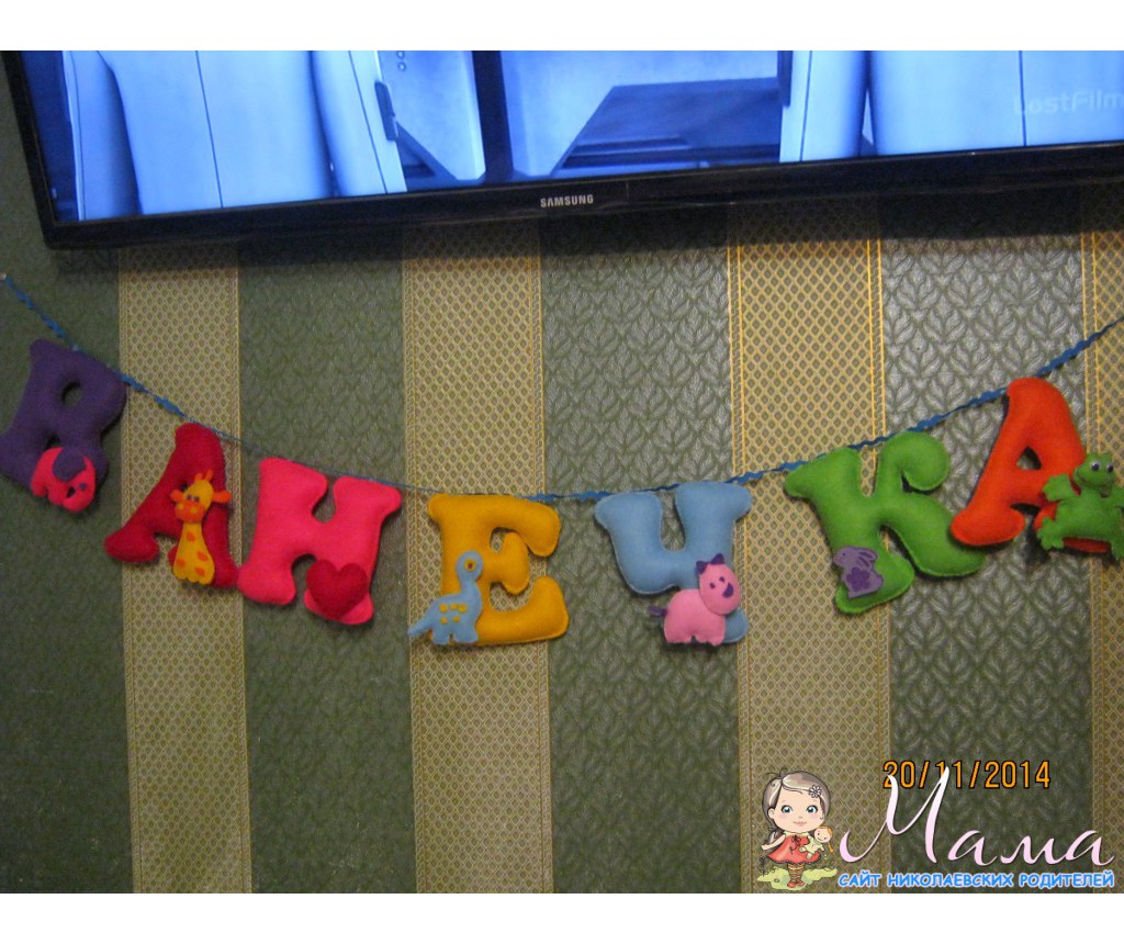 Вот! Хвастаюсь снова! Только закончила. Именная гирлянда для племяшки!))