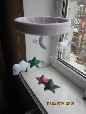 Ну что ж, наконец завершила работу над своей первой задумкой. Это мобиль в космичиской тематике. Моя лучшая подруга вот вот должна уехать в роддом, а для ее сынульки я уже подарок сделала. Строго не судите, делала с огромной любовью и кривыми руками