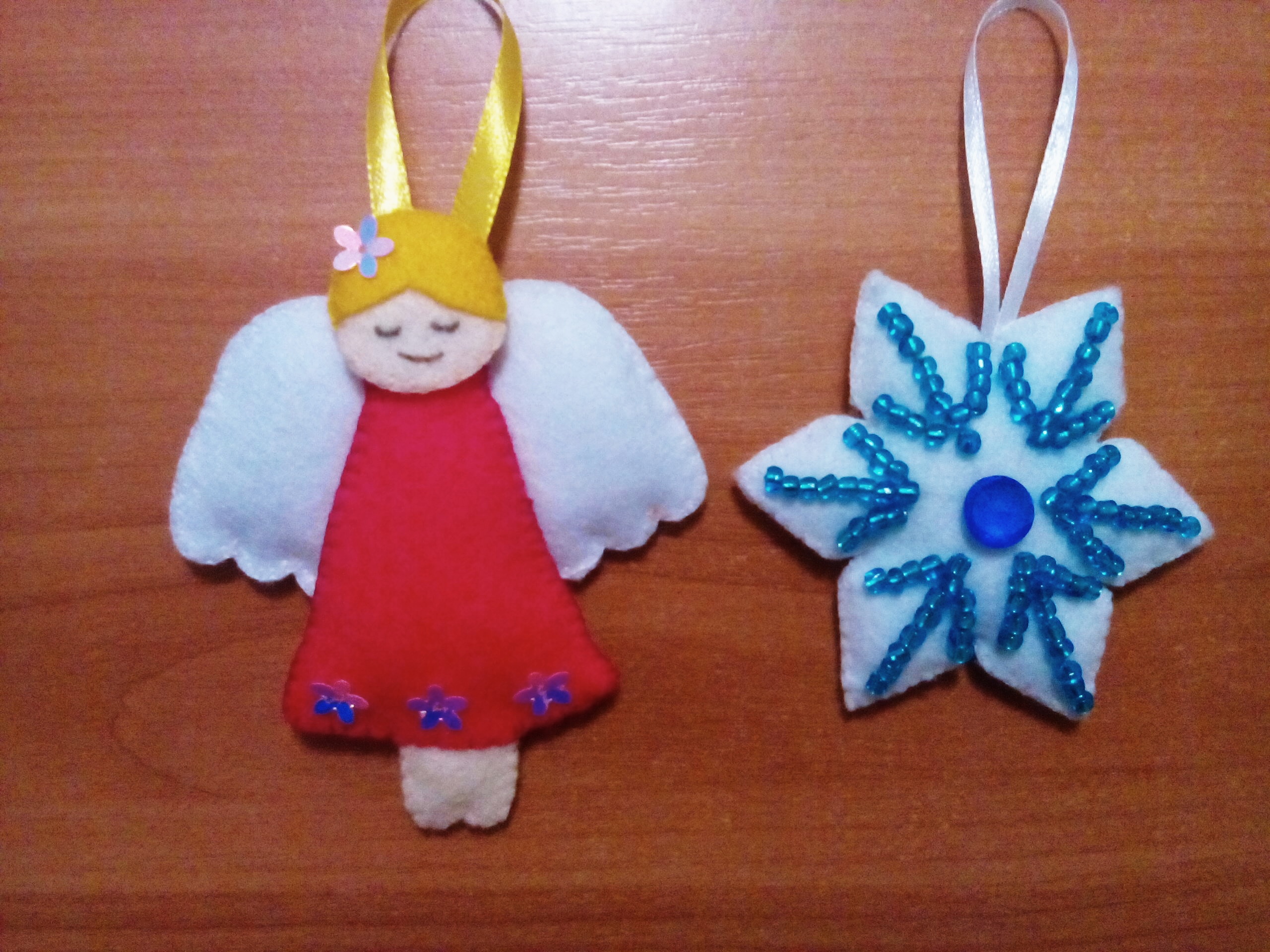 да,счастлив был))похвалили.А в обед когда забрала попросили еще сделать,так как эта уже у заведующей.Звездочка из фетра и блестящая снежинка.