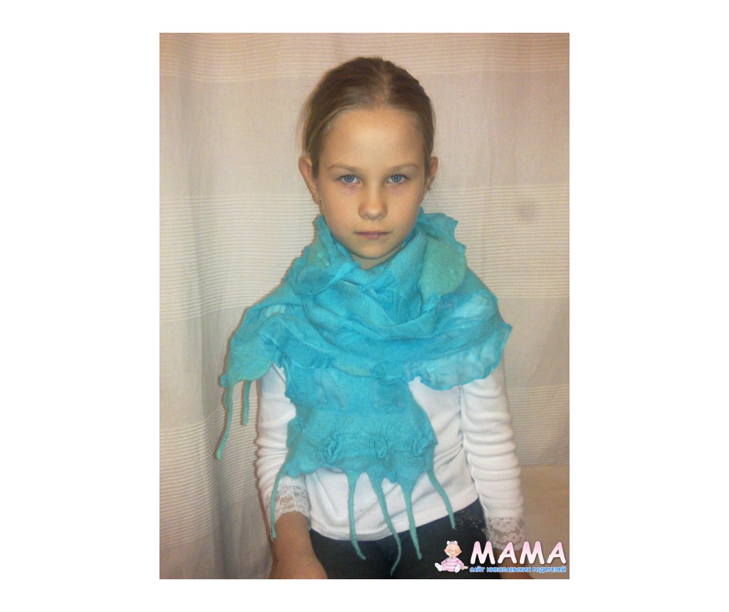 Такой же как и на ярмарке те два шарфа были - шифон сам по себе нежный, а шерсть тонким слоем привалена. Получается очень теплый, легкий и мягкий одновременно.