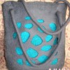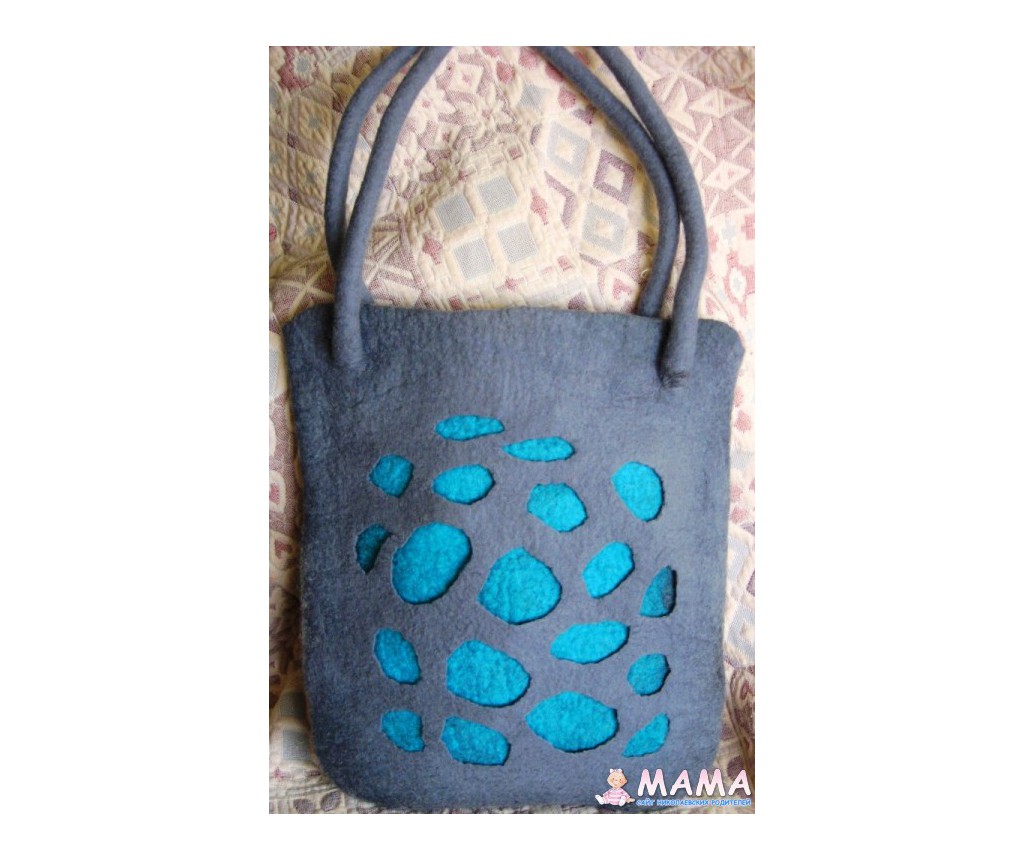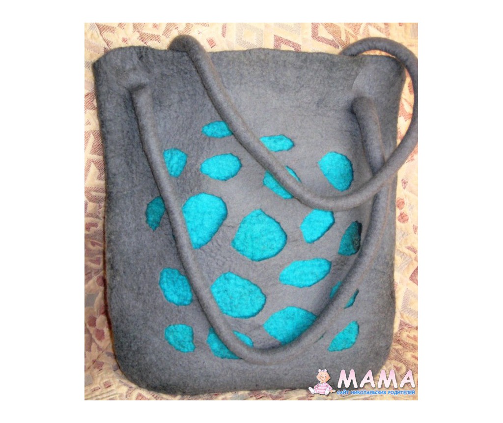 Танюша, спасибо! Отвечаю "по делу" - шерсть двух видов и кардочес новозеландский и австрал. меринос. Сколько ушло не могу точно сказать, т.к. 3 серых цвета плюс бирюза. Осталось каждого цвета понемногу. Я думаю, что 200 грамм точно, может и больше. Стенки довольно плотные, я уже сегодня утром еще их клеевым флизелином укрепила - вообще тверденькая получилась. Кружочки именно так и делала - целлофан, когда почти сваляна шерсть - вырезать и довалять. Ручки сваляла вечером (иначе меня не хватило бы на сумку и ручки вместе - они заразы, так долго уваливались - почти 3 часа). А утром в 10 начала и в 6 закончила. Как раз для похудения - отличная нагрузка.Ну и утром еще отпаривала, иголочкой прошлась еще по проблемным местам. Так еще не все - теперь подкладку и кнопку нужно установить.