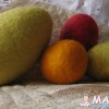 белое внутри полое, ну то есть еще не разрезала, пока там целлофан, а остальные полностью шерстяные. валяла мокрым. зеленое большое полностью руками, маленькие сначала руками, потом в стиралке "дошлифовала", а белое полностью в машинке.