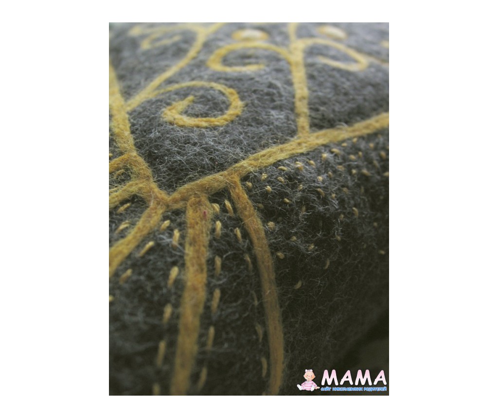 Цитата: #5127 mamatanya 15 October 2012, 21:42та нет ))) это не к февралю подготовка, а производственная необходимость была ))) сначала валяла булыжник на шаблоне, но получилось плохо - форма неудачная, совсем не каменная. провалялся он у меня с полгода, если не больше, недавно посмотрела на него, разрезала и сшила сердечко ))) ничего другого в голову не пришло )) рисунок приваляла и карман вязаный пришила. мне оно немного готичным кажется