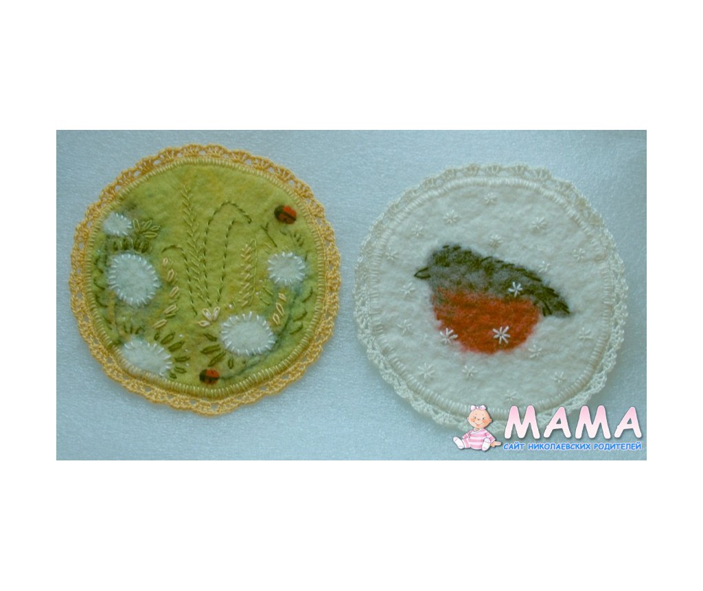 Подставочка со снегирями - прямо картина. Надо развиваться и дальше в жанре шерстяной акварели, хорошо получается ;) И синяя баночка-шкатулочка хороша, надо название какое-нибудь космическое...