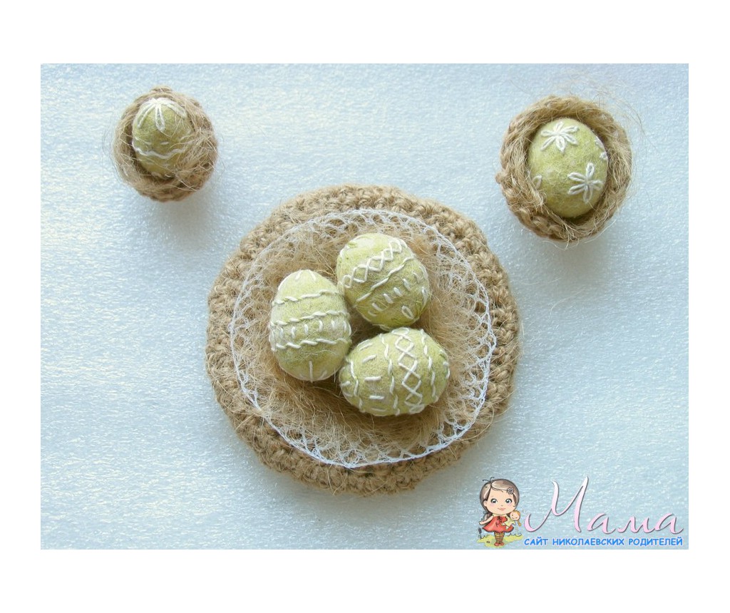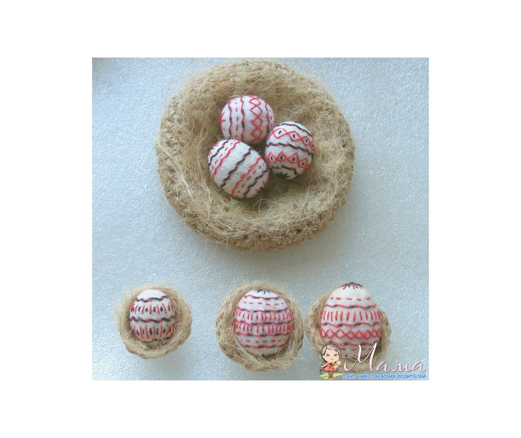 и еще два гнезда )) задумывались просто крашенки без орнамента; но мне сказали, что так вид совсем не тот, и надо вышивку на яйцах обязательно сделать. как думаете? надо?