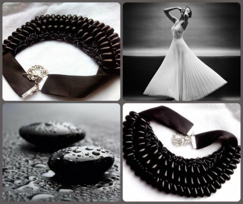 И последняя работа, она же первая в этом году. Колье "Зазеркалье". Все бусины оплетены японским бисером вручную. Диаметр передних пяти бусин 3.5 см.