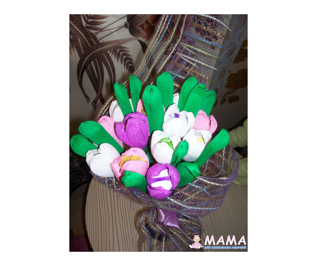 Какие вы все девочки молодцы. Такие красивые букеты делаете, просто неописуемые. Вот и я вдохновилась этой темкой и сделала свой первый букетик. Маме на день рождения.