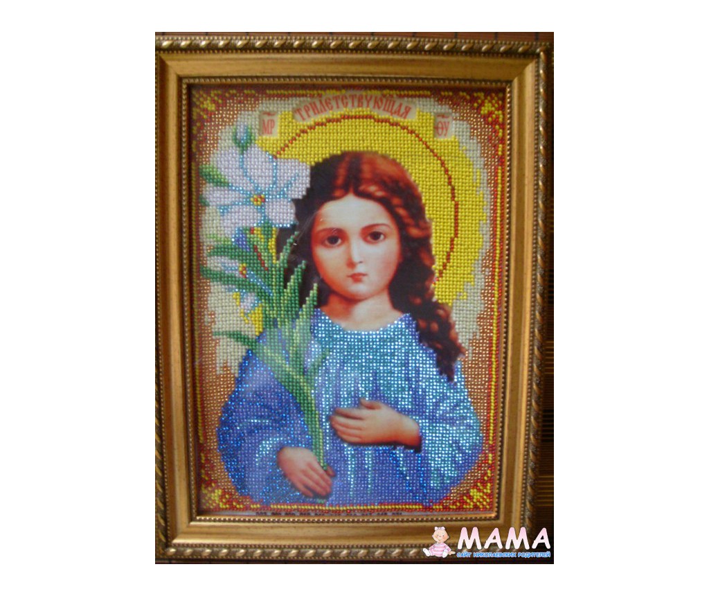 А вот моя первая икона Богородица Почаевская, еще я вышила Святую Татиану, фотки пока нет, сейчас вышиваю Святую мученицу Светлану.