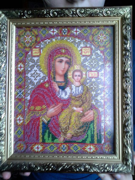 Цитата Ссылка 28 Декабрь 2015 14:53Покажу икону ..Мария с Иссусом маленьким,, которую вышила сама ческим бисером. Уже вставила в рамку, по совету антибликовое стекло. Не судите строго, если понравиться выставлю еще икону св.Ирины