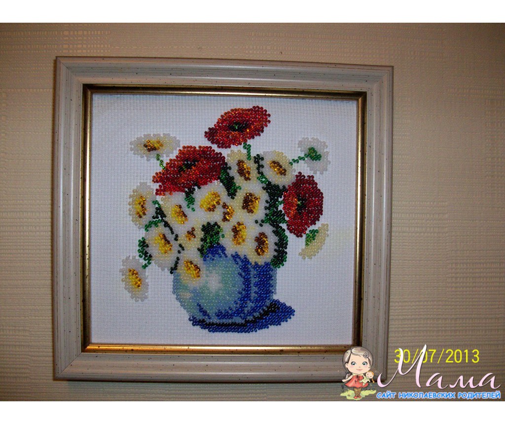 Оці маленькі нестандартного розміру, або купляти велику, для фото+ кольоровий картон та вставляти з паспарту. Доречі, без навичок та досвіду, не так легко бісер і натягується, я колись весь вечір на це витратила. Або пожертвувати якимось краєм малюнку і вставити в меншу рамку. У мене так птах з обрізаним хвостиком стоїть))). Може є можливість самому зробити? Ну і самий нормальний варіант взяти 50-60 грн і йти у багетну майстерню