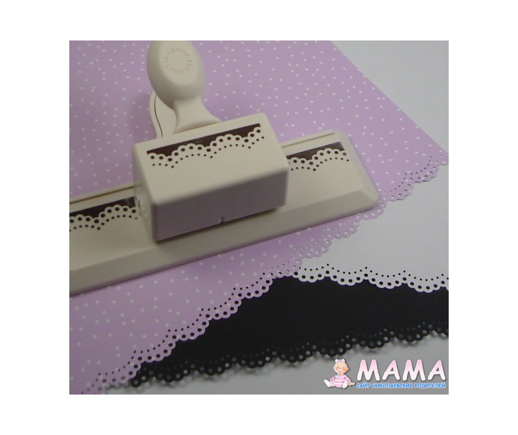 Саша, а тебе обязательно, чтоб цветной картон внахлест на белом повторял дырокольный рисунок, как в образце? Можно же ограничиться только белыми дырокольностями, а картон дополнить зигзагом (я так в морском делала) или лентой, или еще чем. И глянь у Агнешки, она часто бумажные кружева дублирует рядом кружевами текстильными - отлично смотрится. Правда, это в открытках, текстиль в таком количестве альбом, думаю, утяжелит серьезно. Кстати, та же Агнешка делает альбомы с этим же дыроколом бордюрным (много-много альбомов) - всегда белый бордюр между двумя видами цветного картона. Полистай ее блог.