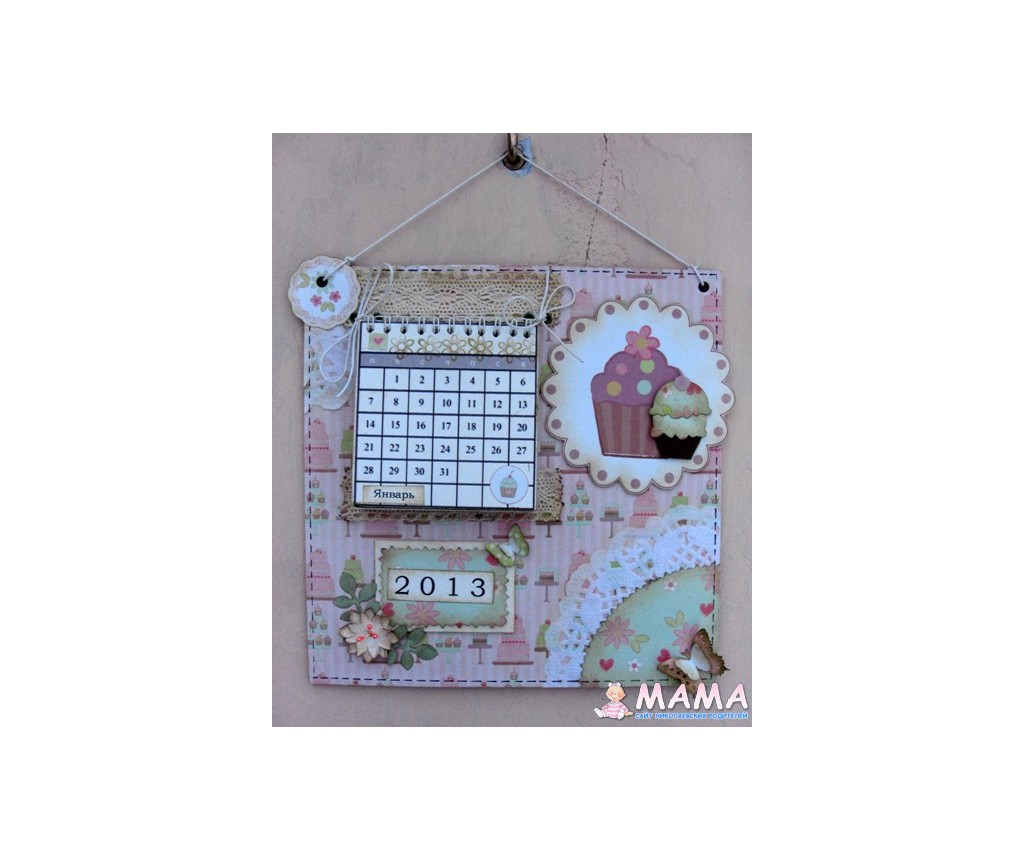 Цитата: #9403 zeta 29 January 2013, 12:43У нас часто бывают семейные посиделки на кухне, за чашечкой чая. И мы часто обсуждаем какие-то свои планы и в процесе нам приходится обращатся к календарю. Поэтому решила сделать настенный календарик на кухню. Сам календарик распечатан, немного задекорирован, и отмечены семейные даты. А также, его можно заменить в следующем году.